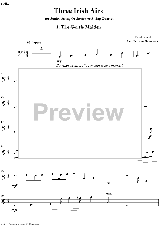 Digital Sheet Music for Air No. 1: The Gentle Maiden - Cello by , Dorene Groocock, Traditional scored for String Quartet; id:95982