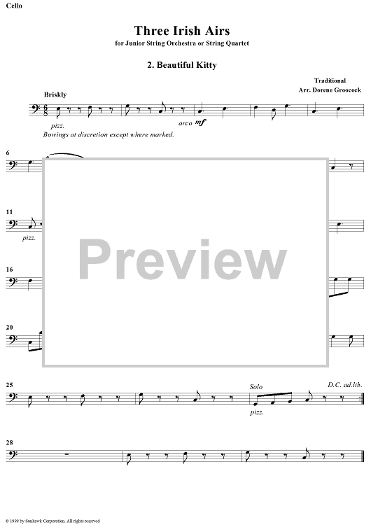 Digital Sheet Music for Air No. 2: Beautiful Kitty - Cello by , Dorene Groocock, Traditional scored for String Quartet; id:112148