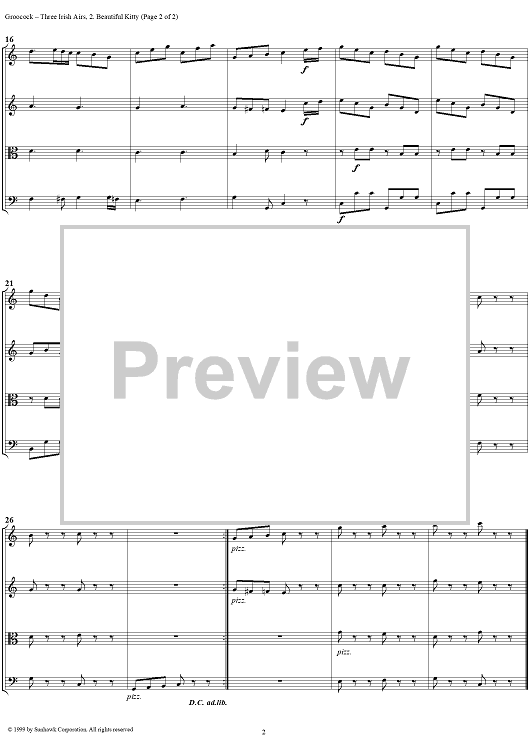 Digital Sheet Music for Air No. 2: Beautiful Kitty - Score by Dorene Groocock, Traditional scored for String Quartet; id:112138