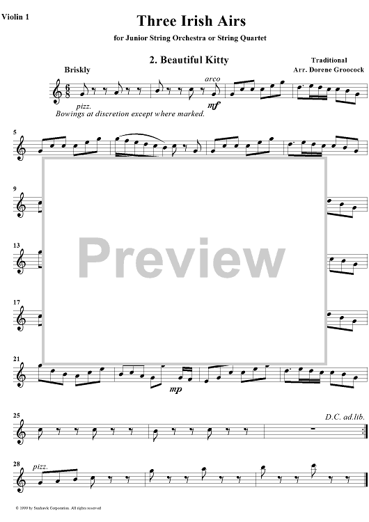 Digital Sheet Music for Air No. 2: Beautiful Kitty - Violin 1 by , Dorene Groocock, Traditional scored for String Quartet; id:112150