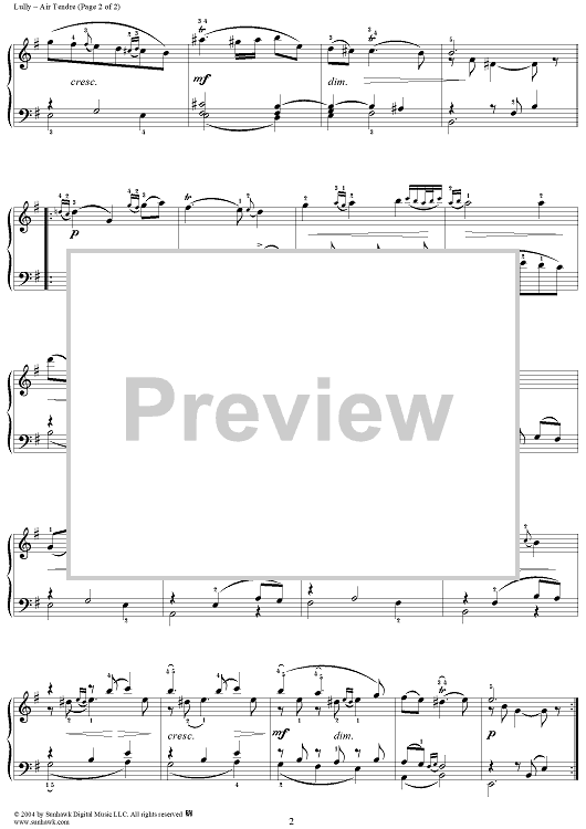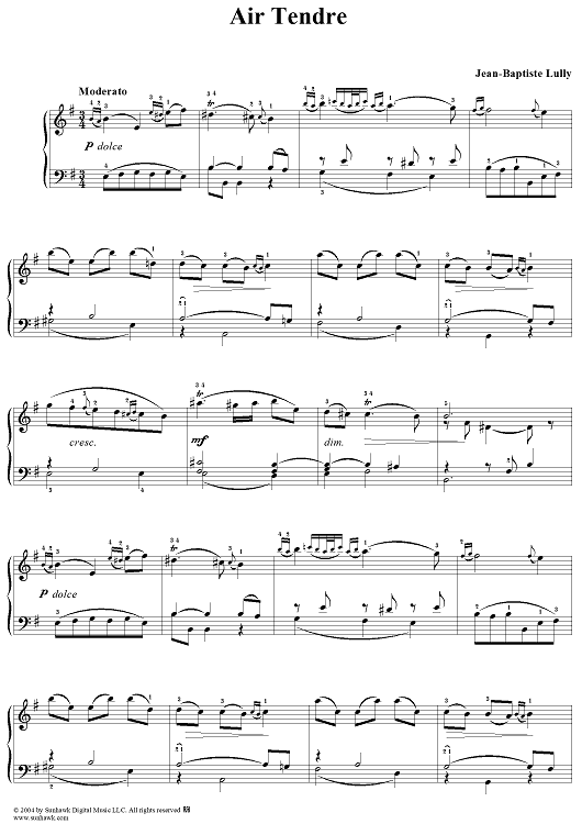 Digital Sheet Music for Air Tendre by Jean-Baptiste Lully scored for Piano Solo; id:295684