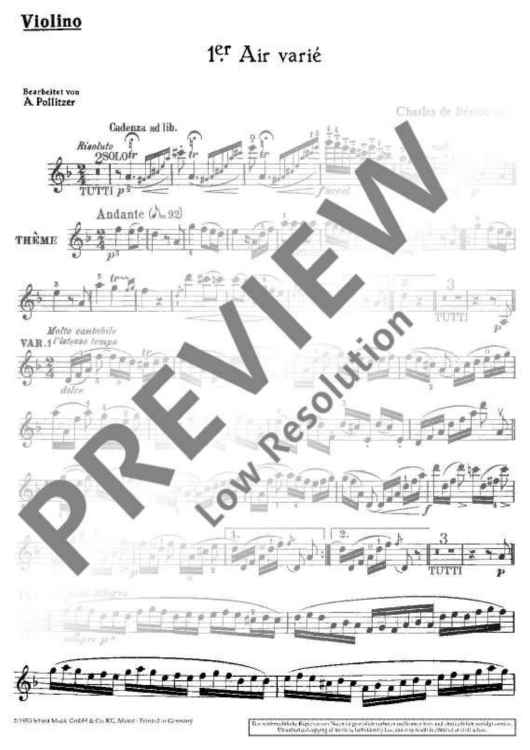 Digital Sheet Music for Air varié D minor by August Pollitzer, Charles-Auguste de Bériot scored for Violin And Piano; id:474800