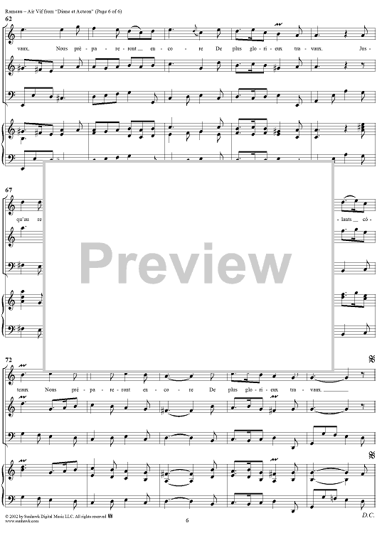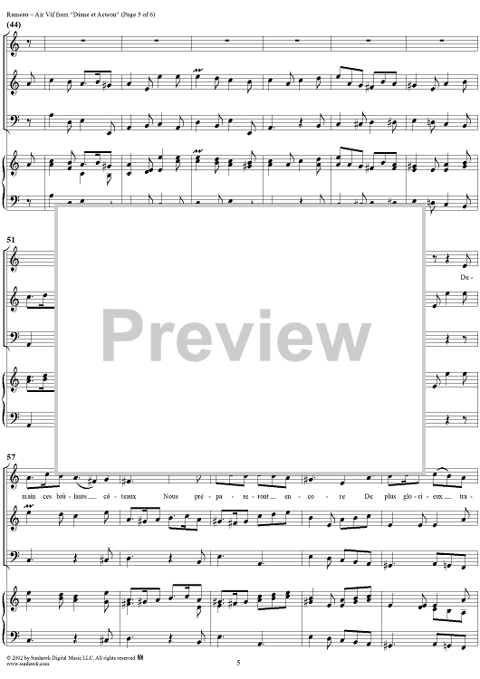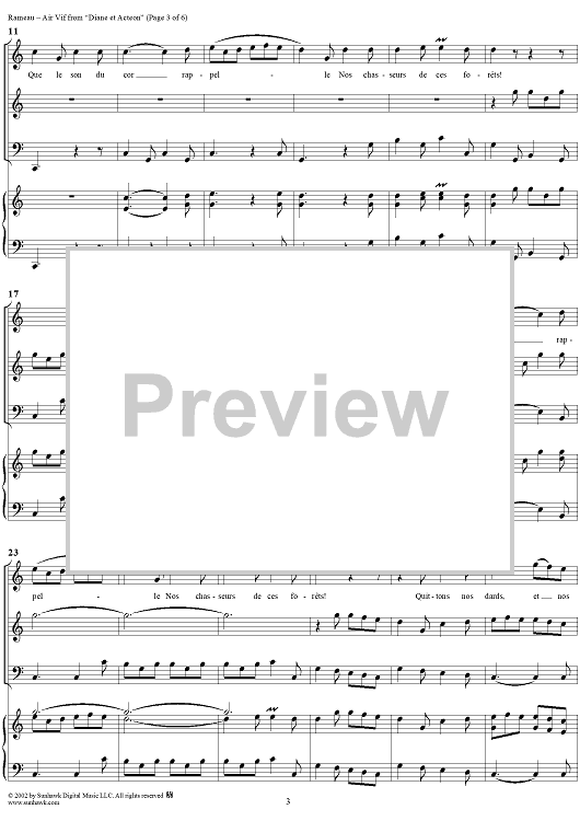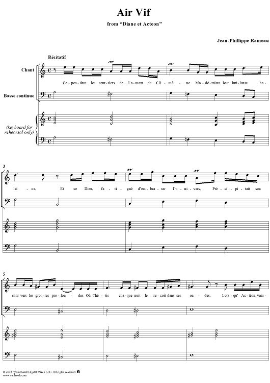 Digital Sheet Music for Air Vif, from "Diane et Actéon" by Jean-Philippe Rameau scored for Voice/Piano; id:255134