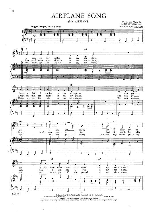 Digital Sheet Music for Airplane Song (My Airplane) by Mike Murphy, Owens Castleman, The Royal Guardsmen scored for Piano/Vocal/Chords; id:433220