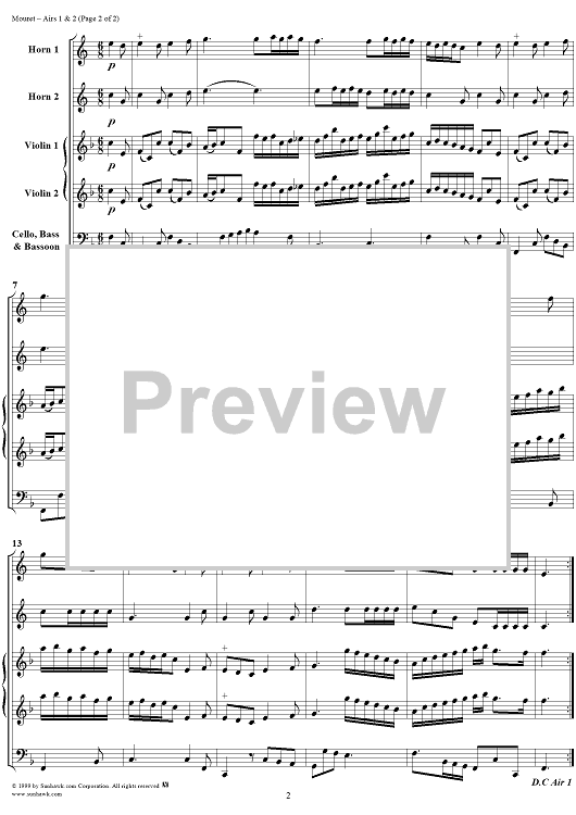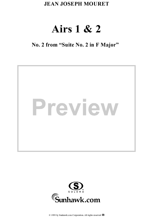 Digital Sheet Music for Airs 1 & 2 - No. 2 from "Suite No. 2 in F Major" by Jean-Joseph Mouret scored for Orchestra; id:252542