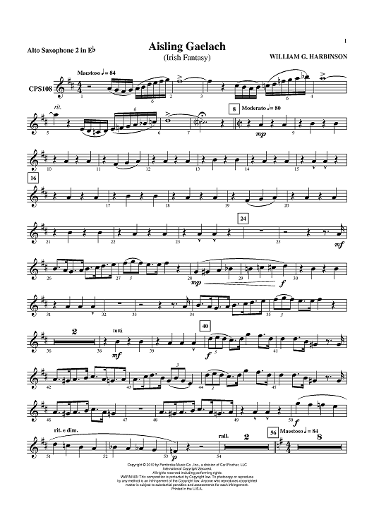 "Aisling Gaelach (Irish Fantasy) - Alto Sax 2" Sheet Music by William G. Harbinson