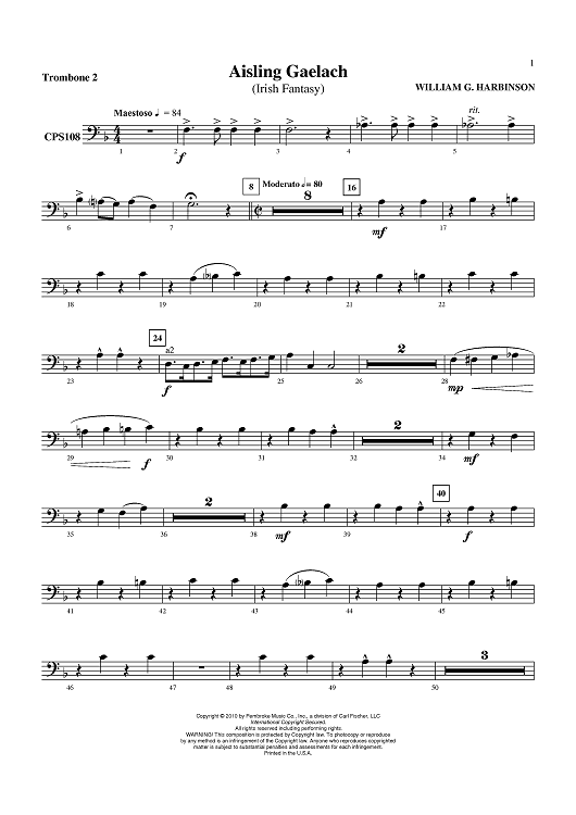 "Aisling Gaelach (Irish Fantasy) - Trombone 2" Sheet Music by William G. Harbinson