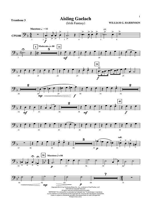"Aisling Gaelach (Irish Fantasy) - Trombone 3" Sheet Music by William G. Harbinson