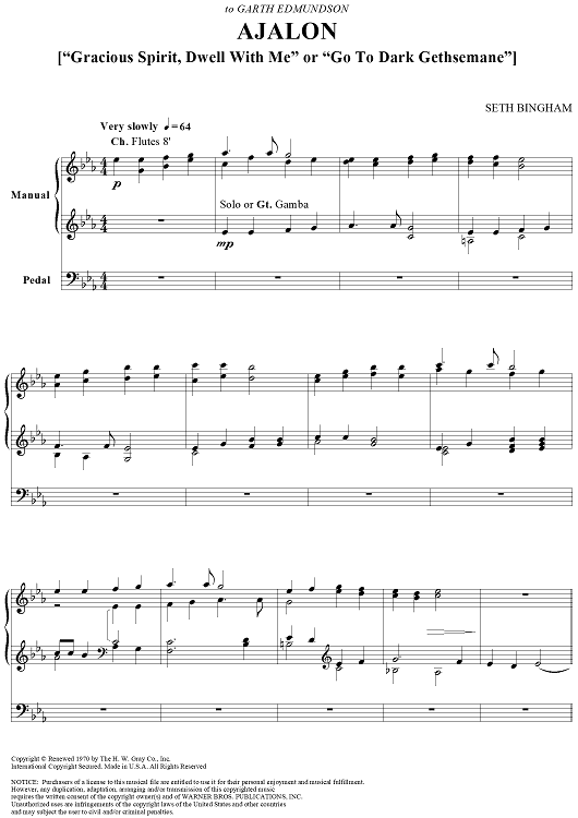 Digital Sheet Music for Ajalon by Seth Bingham scored for Organ Solo; id:275024