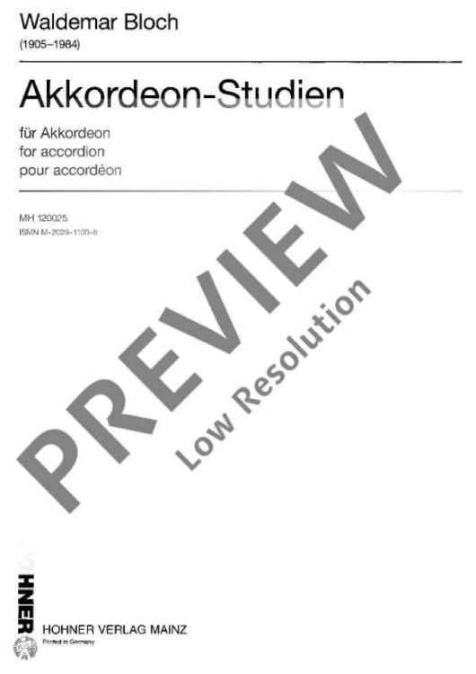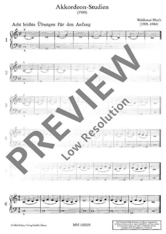 Digital Sheet Music for Akkordeon-Studien by Waldemar Bloch scored for Accordion (m Ii Or M Iii); id:475940