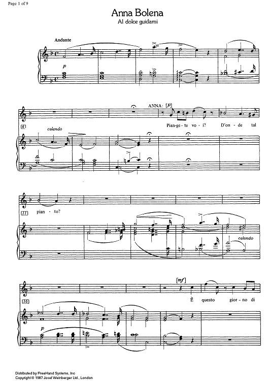 "Al dolce guidami from Anna Bolena" Sheet Music by Gaetano Donizetti
