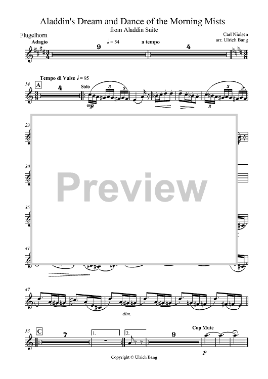 Digital Sheet Music for Aladdin's Dream and Dance of the Morning Mists - Flugelhorn by , Carl Nielsen, Ulrich Bang scored for Brass Ensemble; id:419711