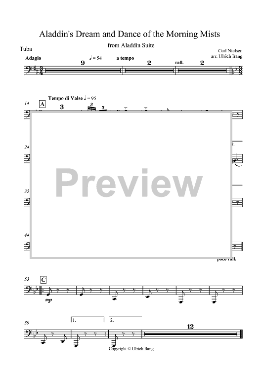 Digital Sheet Music for Aladdin's Dream and Dance of the Morning Mists - Tuba by , Carl Nielsen, Ulrich Bang scored for Brass Ensemble; id:419719