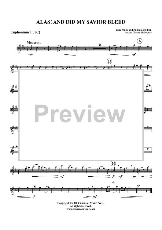 "Alas! And Did My Savior Bleed - Euphonium 1 BC/TC" Sheet Music by Isaac Watts