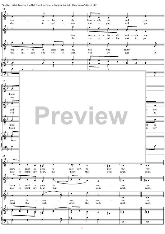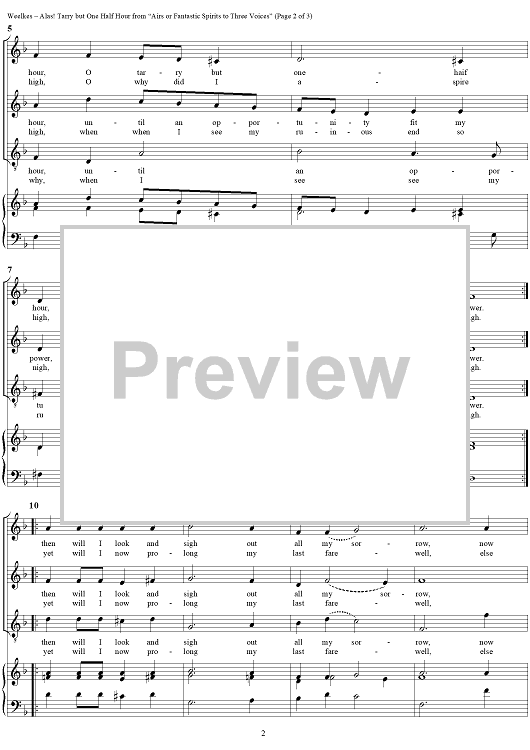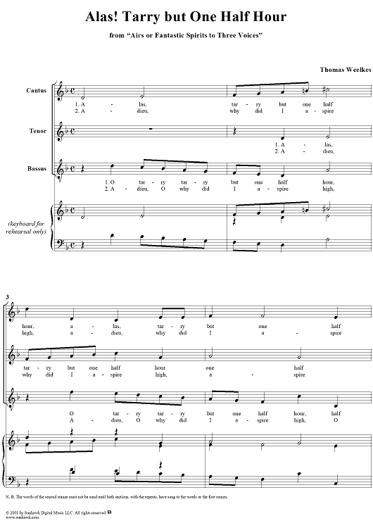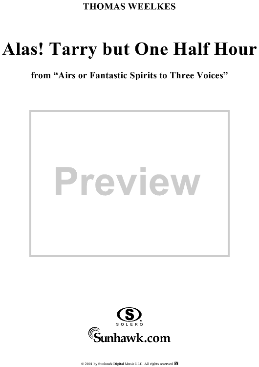 Digital Sheet Music for Alas! Tarry but One Half Hour by Thomas Weelkes scored for Mixed Chorus; id:262348