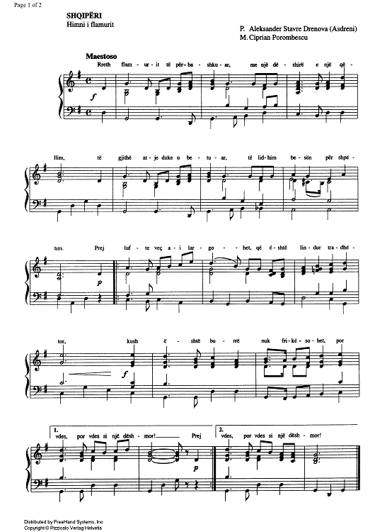 "Albania - Himni i Flamurit" Sheet Music by Ciprian Porombescu