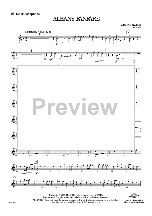"Albany Fanfare - Bb Tenor Sax" Sheet Music by William Owens