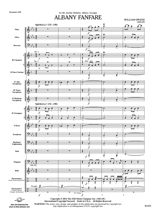 "Albany Fanfare - Score" Sheet Music by William Owens