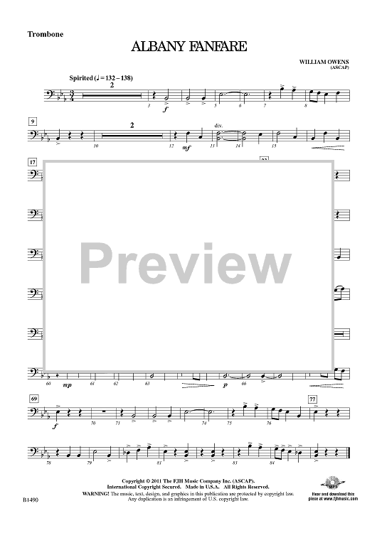 "Albany Fanfare - Trombone" Sheet Music by William Owens