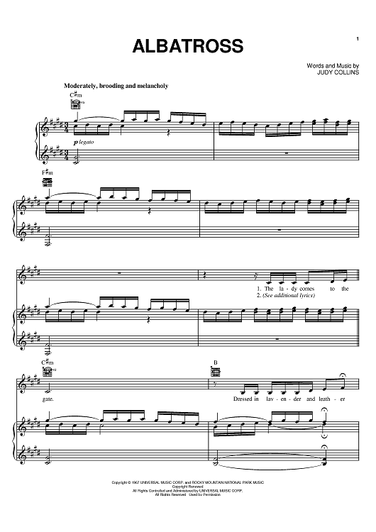 Digital Sheet Music for Albatross by Judy Collins scored for Piano/Vocal/Chords; id:402641