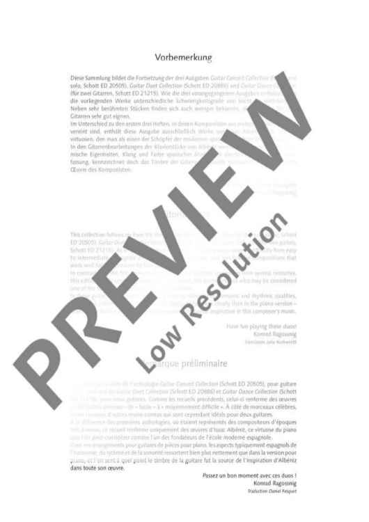 The Albéniz Collection is dedicated to the works by Isaac Albéniz, the virtuoso pianist, who can be regarded as one of the creators of the modern Spanish school. In these guitar arrangements of the original piano pieces, the harmonic and rhythmic qualities, timbre of colours of Spanish music are displayed far more clearly than in the piano version – the timbre of the guitar was the source of inspiration. Alongside very famous pieces there are also less familiar compositions that work well for performance by two guitars. These pieces range in difficulty from easy to intermediate.