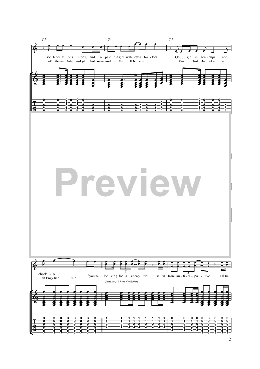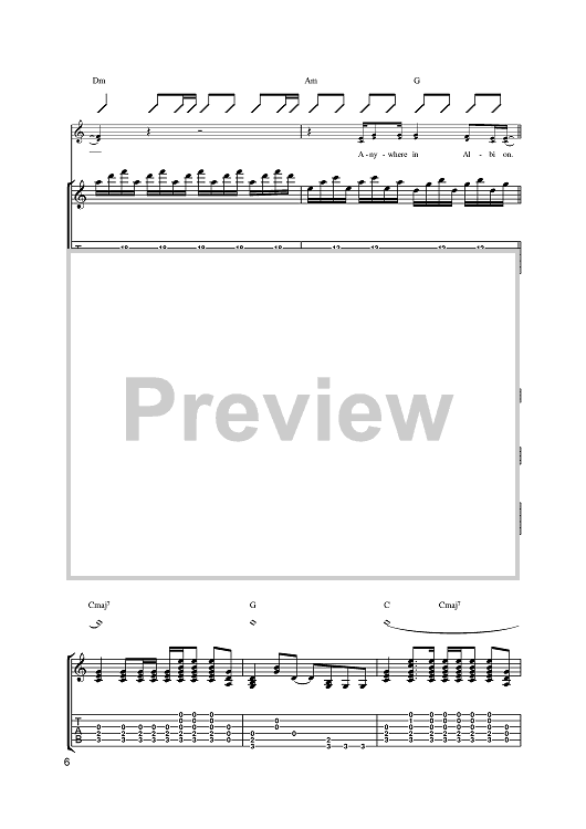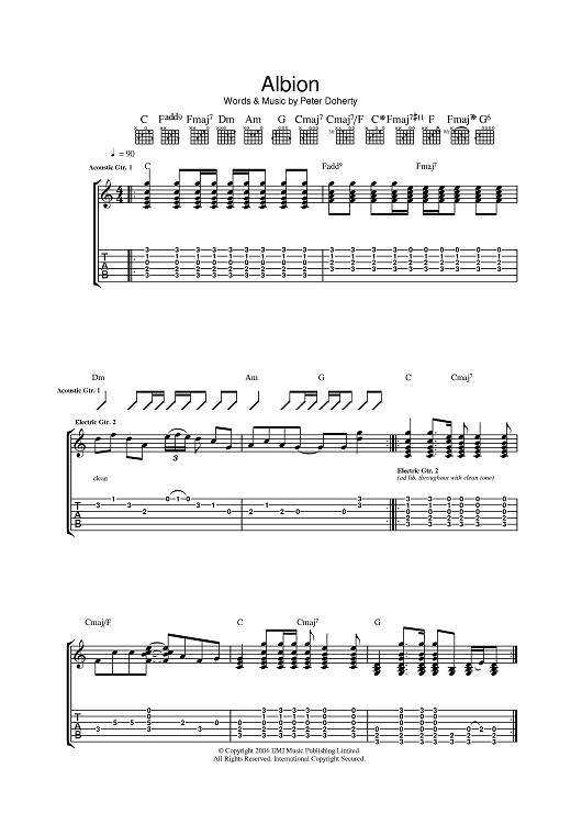 Digital Sheet Music for Albion by Babyshambles, Pete Doherty scored for Guitar Tab; id:391554
