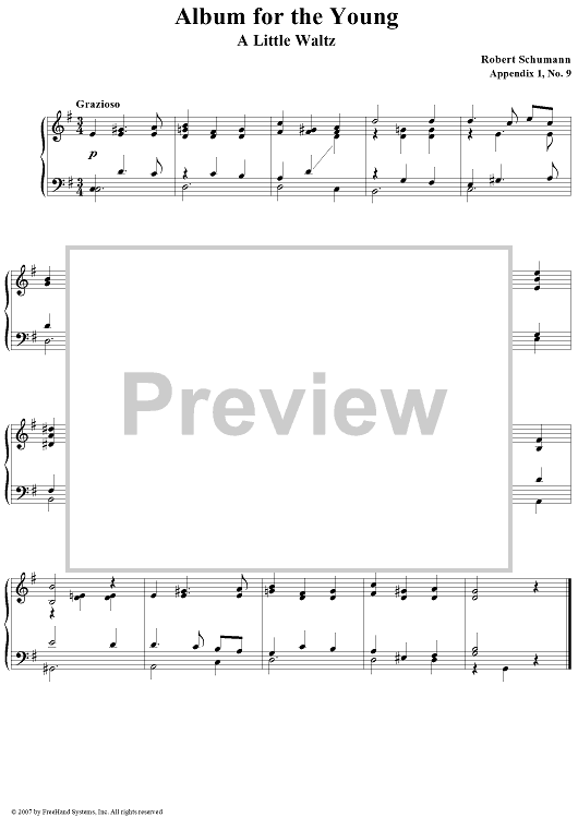 Digital Sheet Music for Album for the Young. Appendix 1. No. 9. A Little Waltz by Robert Schumann scored for Piano Solo; id:363841