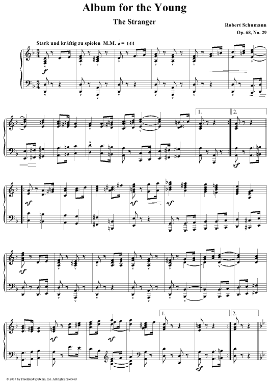 "Album for the Young. No. 29. The Stranger" Sheet Music by Robert Schumann
