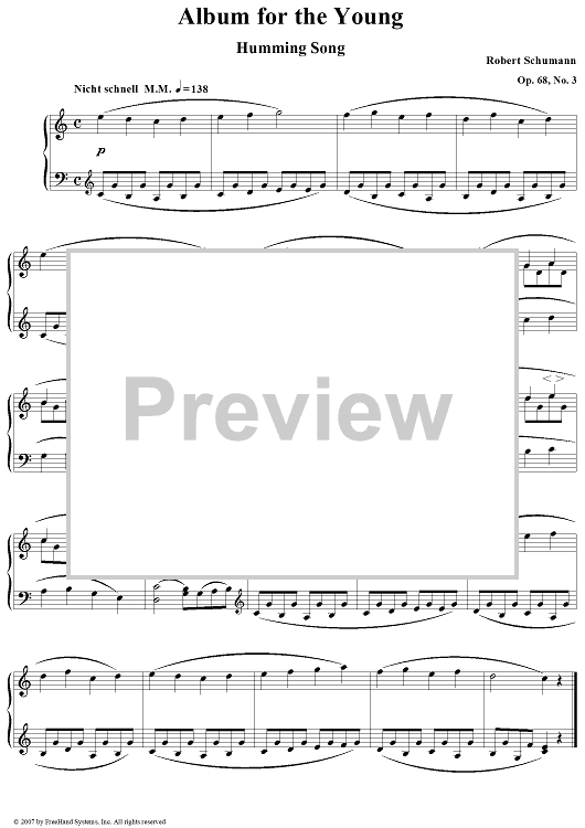 "Album for the Young. No. 3. Humming Song" Sheet Music by Robert Schumann