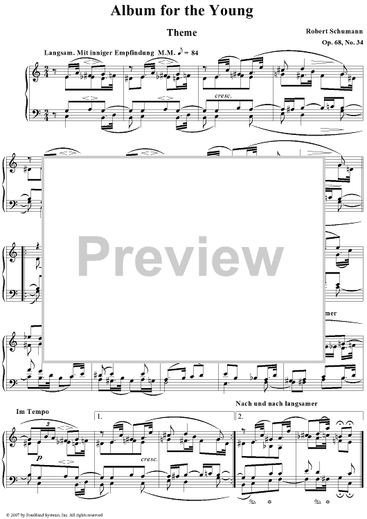 "Album for the Young. No. 34. Theme" Sheet Music by Robert Schumann