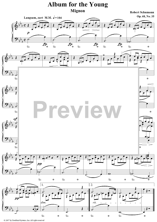 Digital Sheet Music for Album for the Young. No. 35. Mignon by Robert Schumann scored for Piano Solo; id:363915