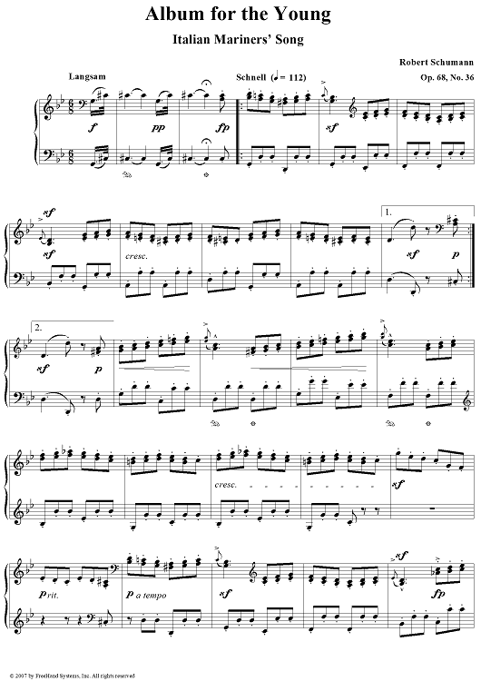 Digital Sheet Music for Album for the Young. No. 36. Italian Mariners’ Song by Robert Schumann scored for Piano Solo; id:363916
