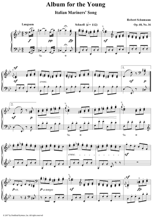 "Album for the Young. No. 36. Italian Mariners’ Song" Sheet Music by Robert Schumann