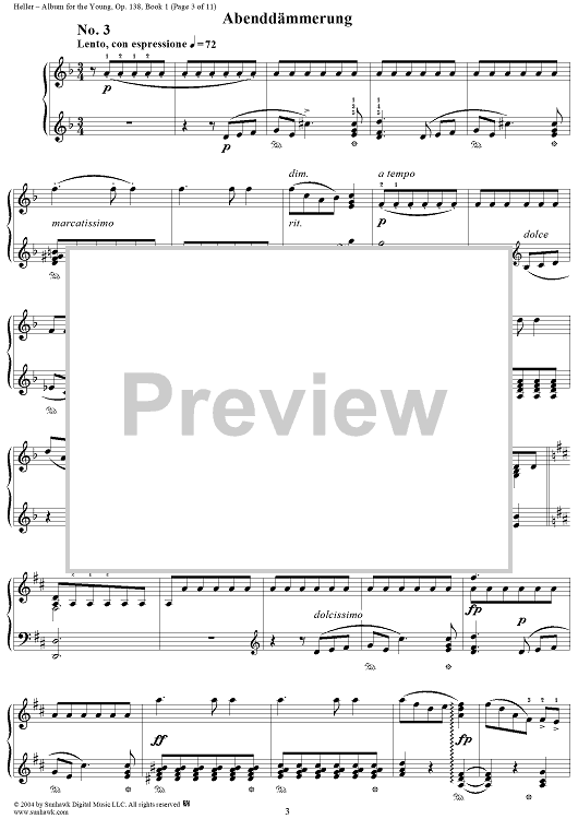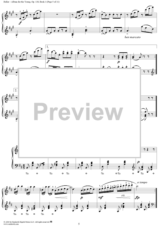 Digital Sheet Music for Album for the Young, Op. 138, Book 1, Nos. 1 - 8 by , Stephen Heller scored for Piano Solo; id:295019
