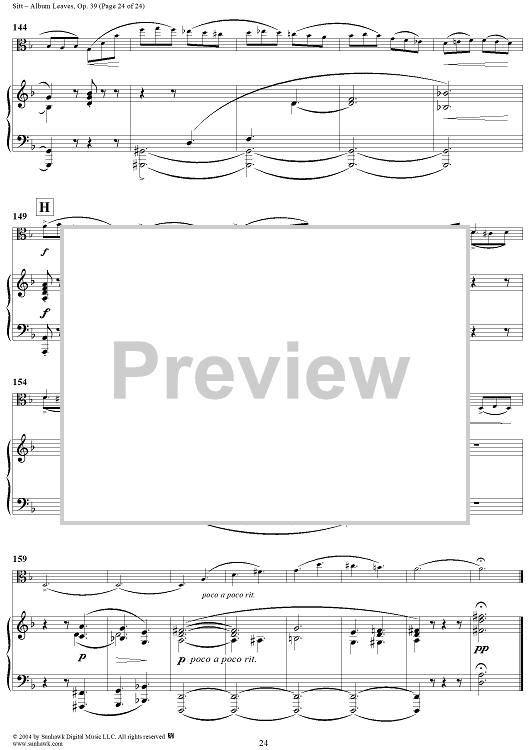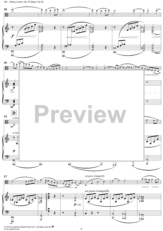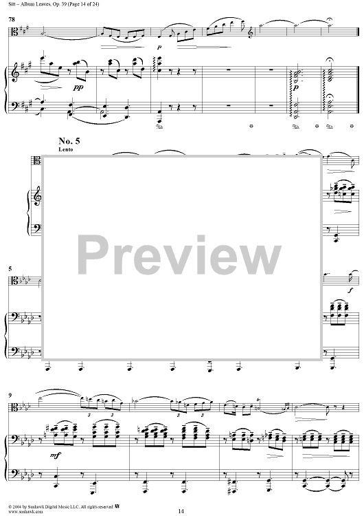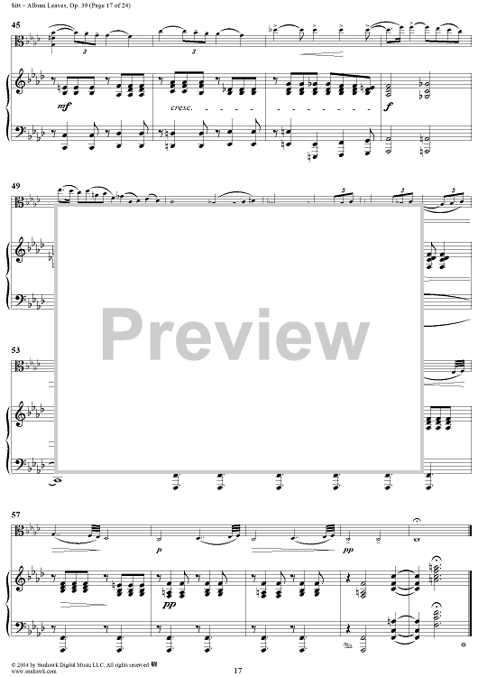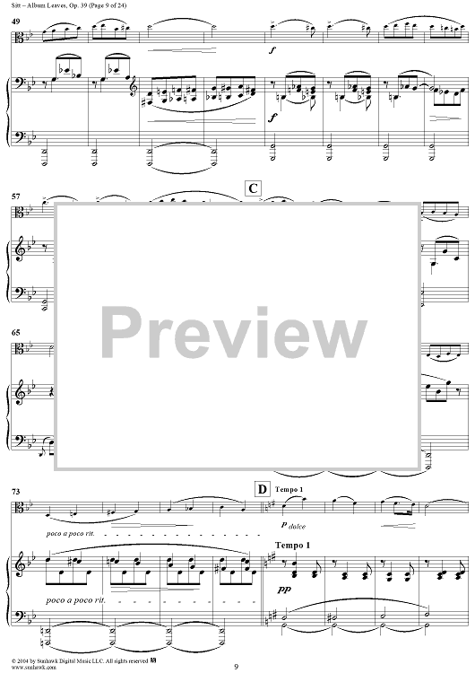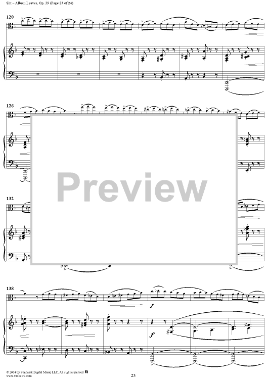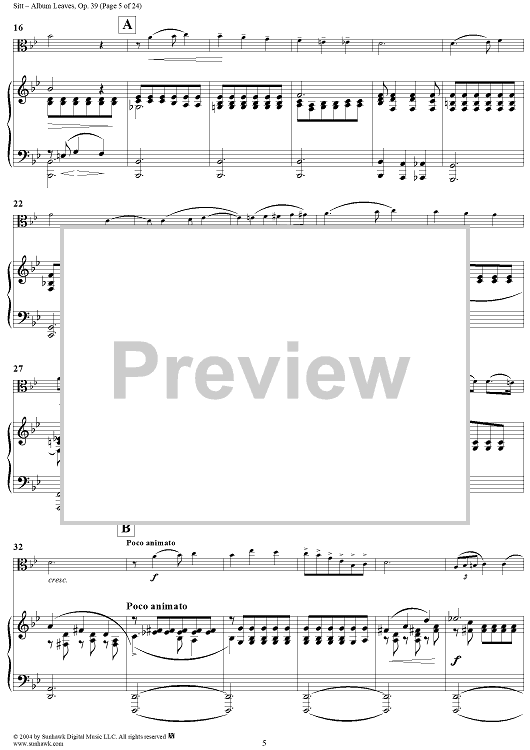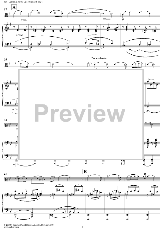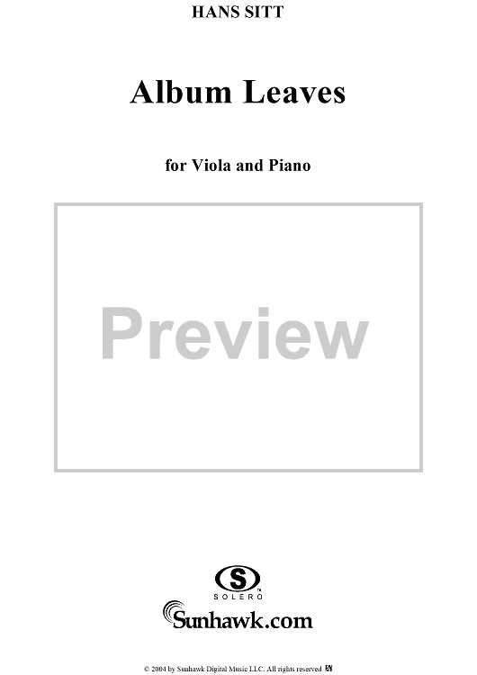 Digital Sheet Music for Album Leaves - Piano Score by Hans Sitt scored for Viola/Piano; id:303082