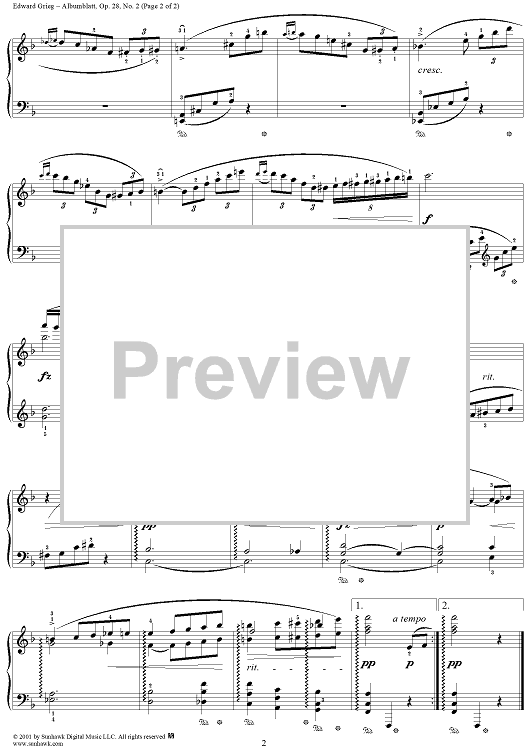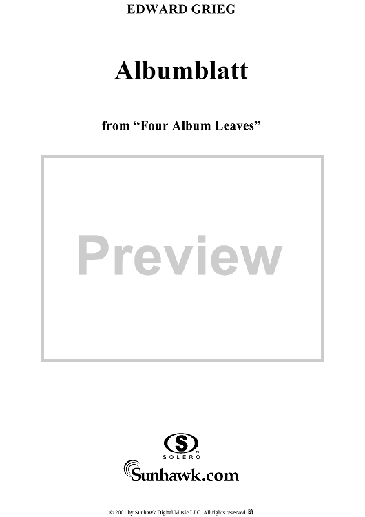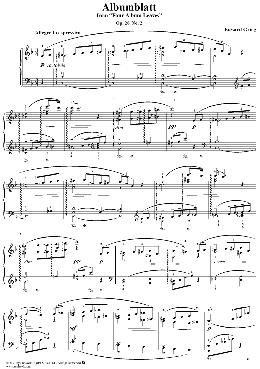 Digital Sheet Music for Albumblatt (Albumleaf), Op.28, No. 2 by Edvard Grieg scored for Piano Solo; id:267722