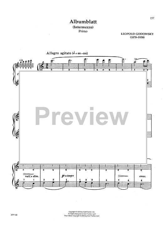 Digital Sheet Music for Albumblatt (Intermezzo) by Leopold Godowsky scored for 2 Pianos, 4 Hands; id:439601