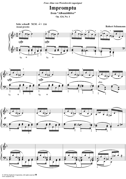 Digital Sheet Music for Albumblätter, No. 1: Impromptu by Robert Schumann scored for Piano Solo; id:118298