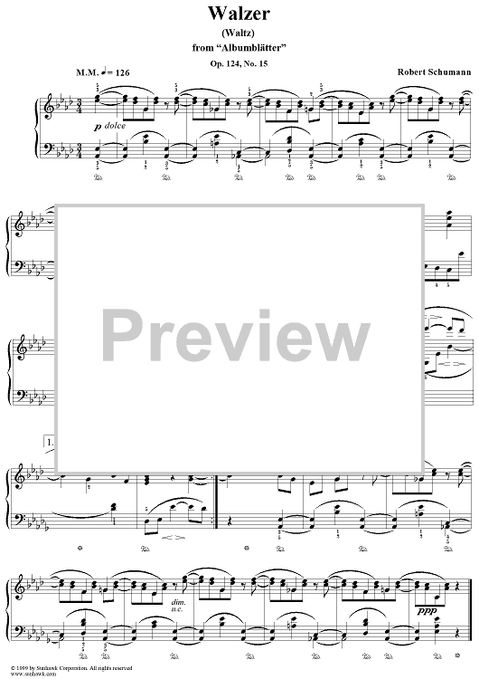 Digital Sheet Music for Albumblätter, No. 15: Walzer by Robert Schumann scored for Piano Solo; id:118299