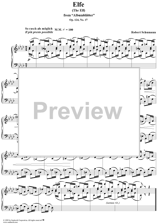 Digital Sheet Music for Albumblätter, No. 17: Elfe by Robert Schumann scored for Piano Solo; id:118296