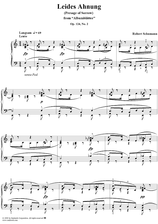 Digital Sheet Music for Albumblätter, No. 2: Leides Ahnung by Robert Schumann scored for Piano Solo; id:118290
