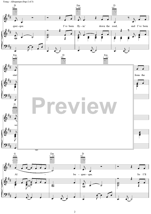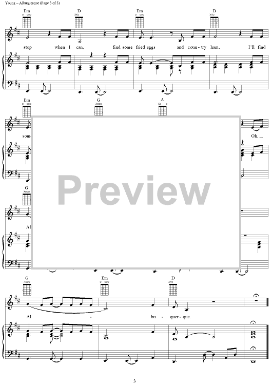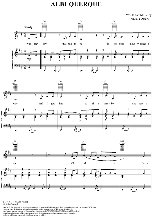 Digital Sheet Music for Albuquerque by Neil Young scored for Piano/Vocal/Chords; id:262910