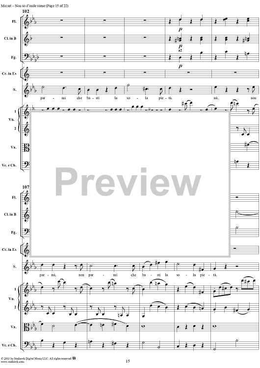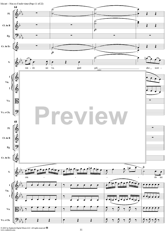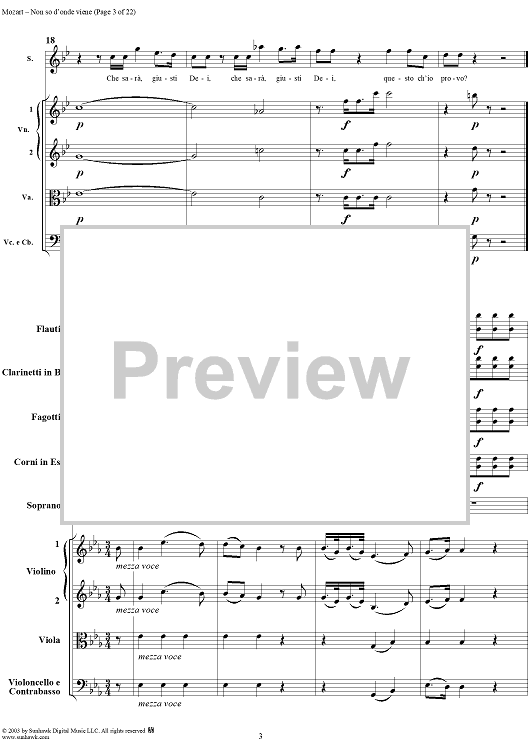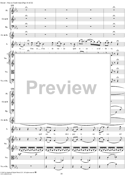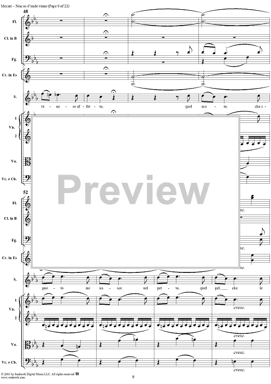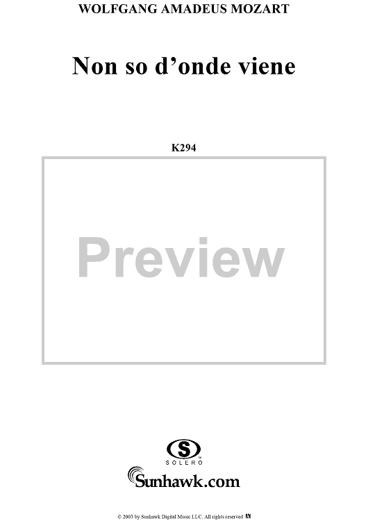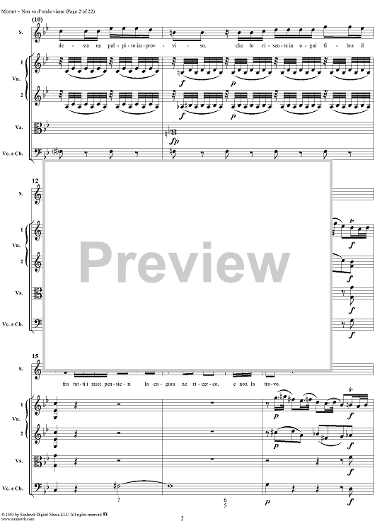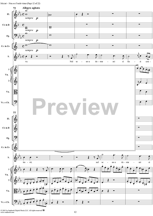 Digital Sheet Music for "Alcandro, lo confesso", recitative and "Non sò d'onde viene", aria, K294 - Full Score by Wolfgang Amadeus Mozart scored for Soprano/Orchestra; id:292283