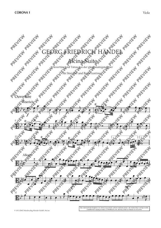 Digital Sheet Music for Alcina-Suite - Set of Parts by George Frideric Handel, Adolf Hoffmann scored for String Orchestra; id:500206
