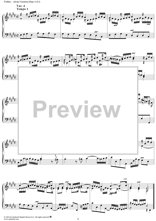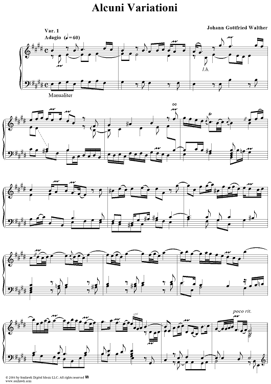 Digital Sheet Music for Alcuni Variationi by Johann Gottfried Walther scored for Organ Solo; id:298011