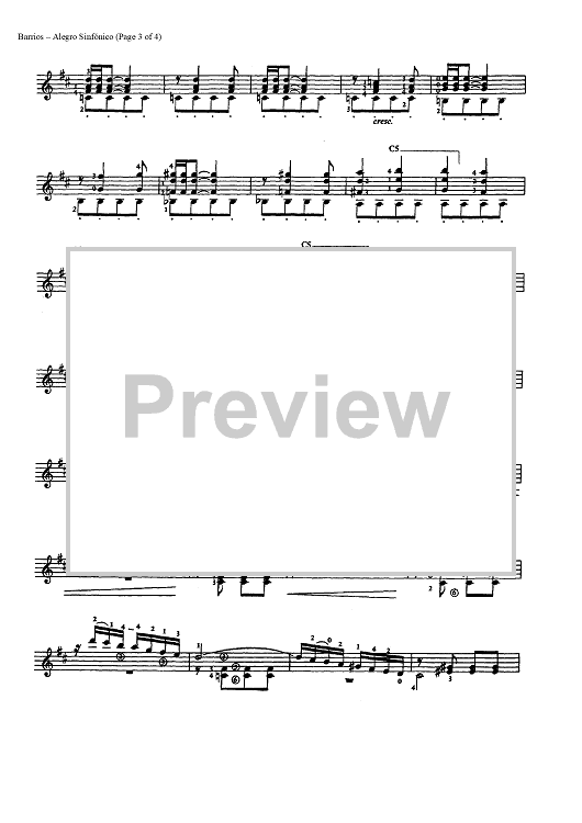 Digital Sheet Music for Alegro Sinfonico (Symphonic Allegro) by Agustin Barrios Mangore scored for Guitar Solo; id:452211