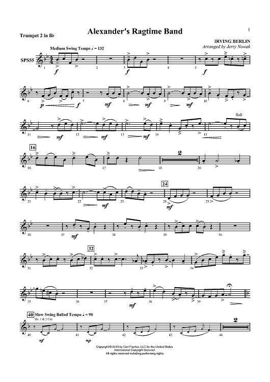 Digital Sheet Music for Alexander’s Ragtime Band - Trumpet 2 in Bb by Irving Berlin, Jerry Nowak scored for Concert Band; id:436113