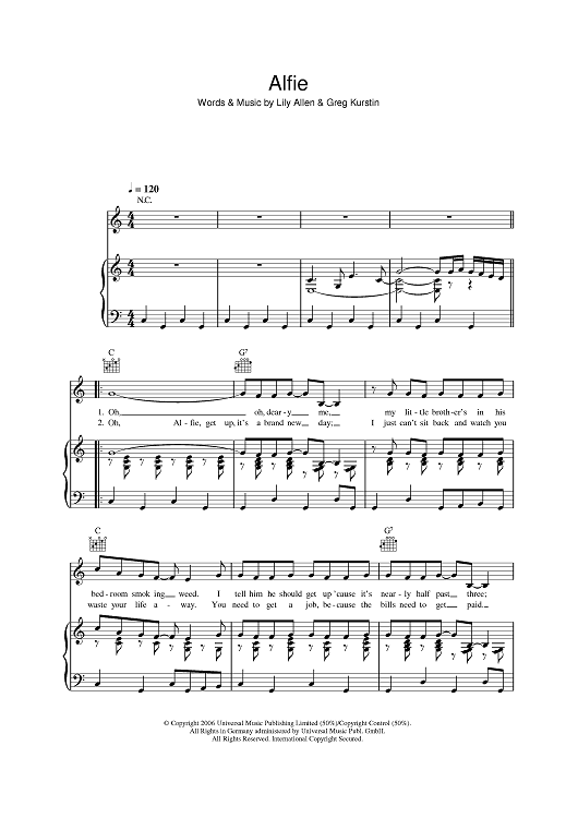 Digital Sheet Music for Alfie by Greg Kurstin, Lily Allen scored for Piano/Vocal/Chords; id:392061