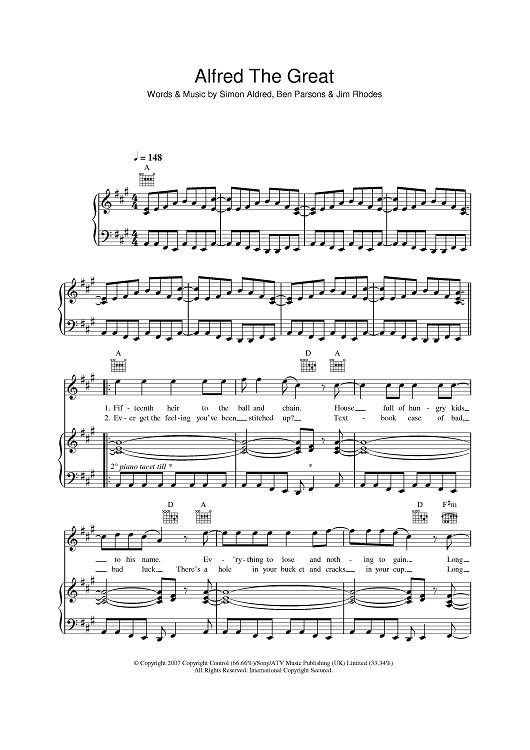 Digital Sheet Music for Alfred The Great by Simon Aldred, Cherry Ghost, Ben Parsons, Jim Rhodes scored for Piano/Vocal/Chords; id:401381