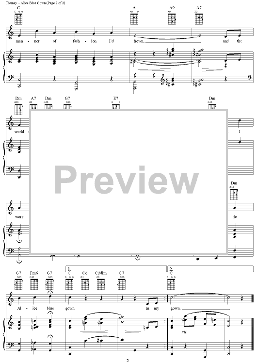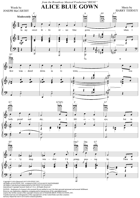 Digital Sheet Music for Alice Blue Gown by Joe McCarthy, Harry Tierney scored for Piano/Vocal/Chords; id:260224